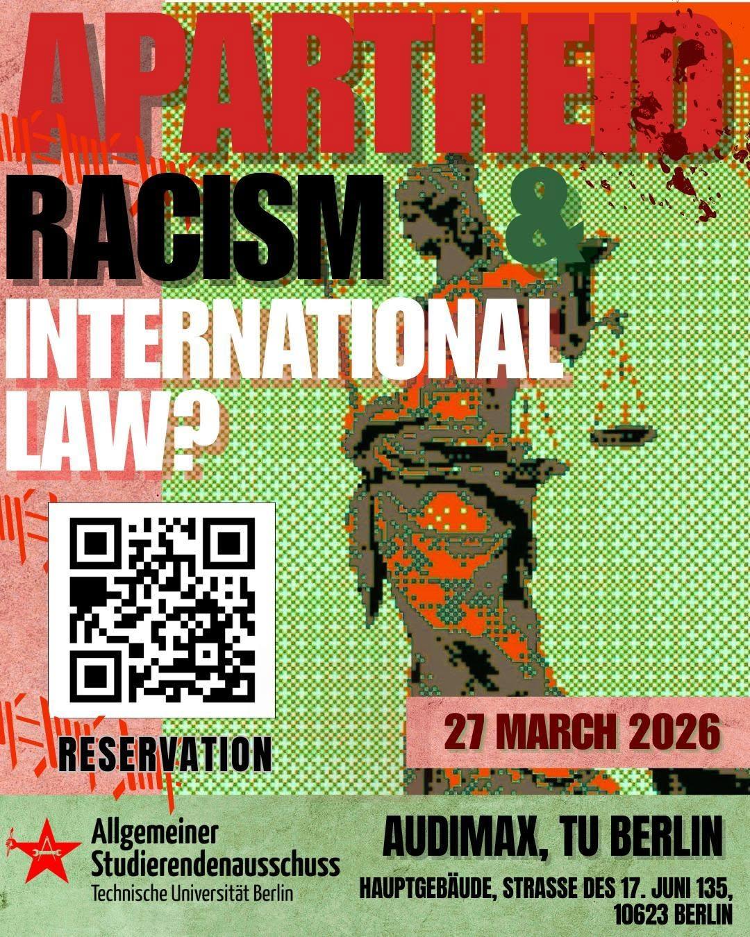 More information at: https://fantifacharlottenburg.noblogs.org/en-US/27-03-2026-apartheid-rassismus-voelkerrecht-paneldiskussion-audimax-tub/