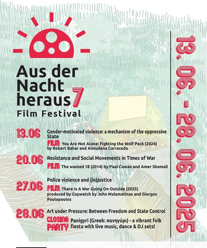 More information at https://griechenlandsoli.com/2025/05/29/7-aus-der-nacht-heraus-film-festival/