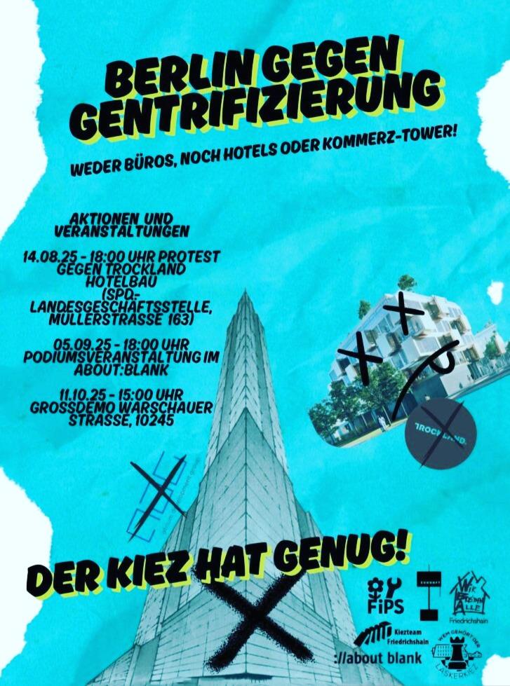 Berlin Against Gentrification On Saturday, 11/10/2025 from 15:00 at Warschauer Straße (This event is not organized by The Left Berlin) More information at: Instagram