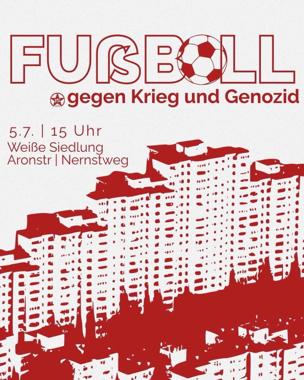 Football Against War and Genocide On Saturday, 05/07/2025 from 15:00 at Weisse Siedlung (This event is not organized by The Left Berlin) More information at Instagram