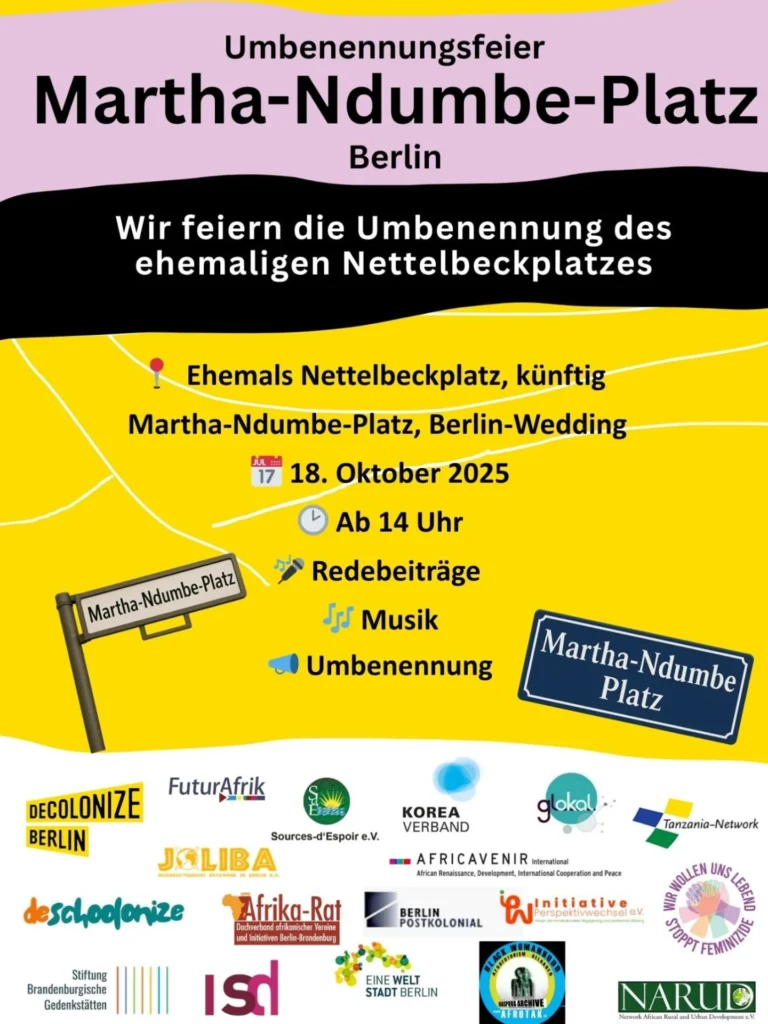 On Saturday, 18/10/2025 from 14:00 at Martha-Ndumbe-Platz