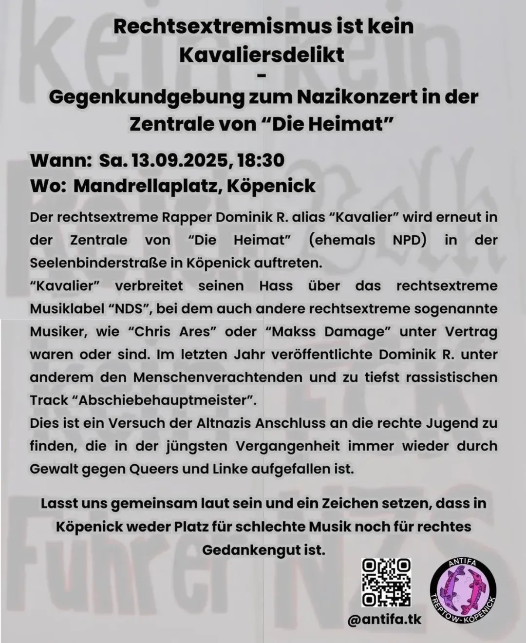 On Saturday, 13/09/2025 from 18:30 at Mandrellaplatz Köpenick