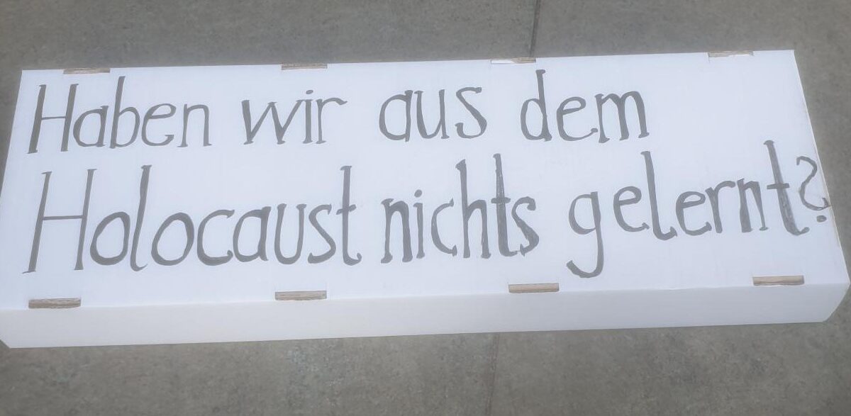 And to repeat: all that you did was hold up one sign asking whether Germany has learned from the Holocaust and another sign opposing the violation of human rights in Gaza. It wasn’t antisemitic, it wasn’t racist, but now you’re facing trial because of this?