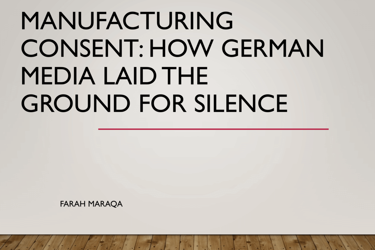 Manufacturing Consent: How German Media Laid the Ground for Silence Presentation from the Left Journalism Day School, 31st May 2025 Farah Maraqa 03/06/2025 Keynote_Farah_Maraqa_2025_VisualsDownload