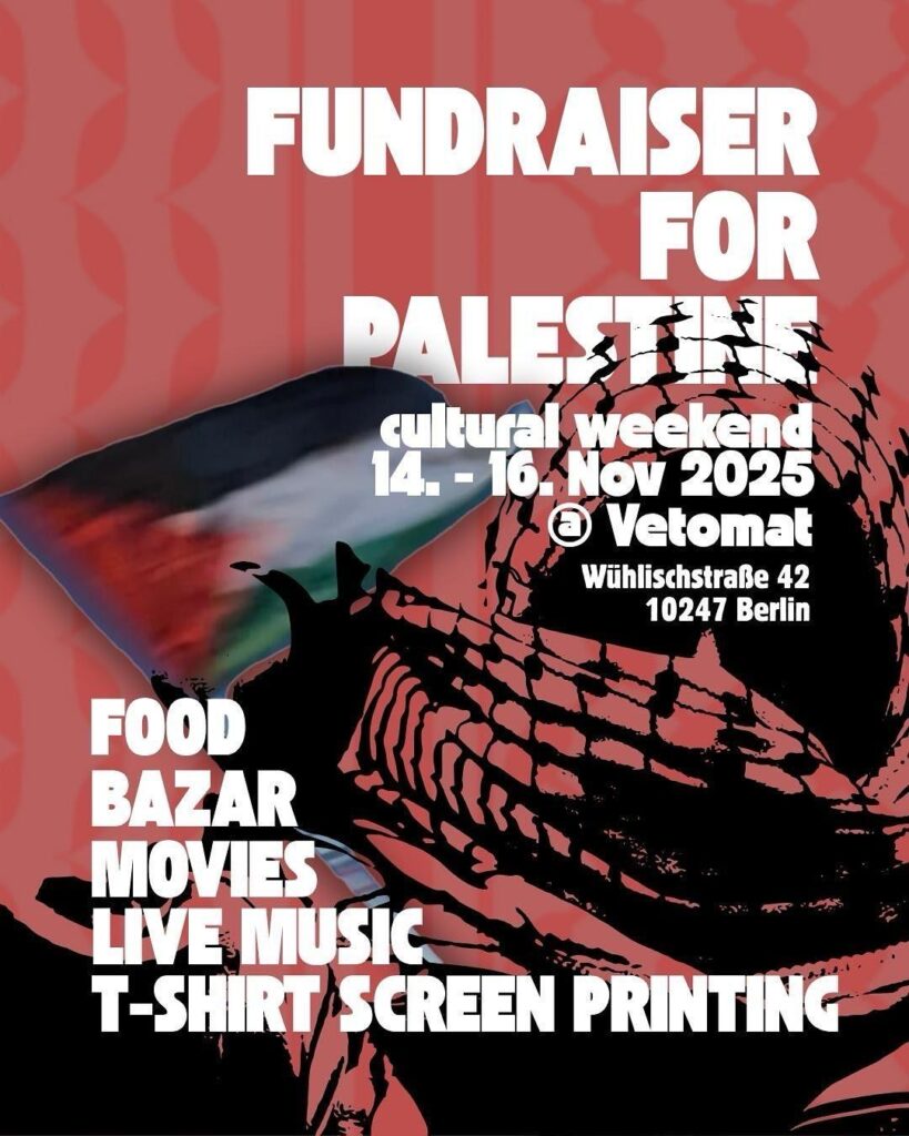 More information at: https://www.anarchistischefoderation.de/2025-11-14-fundraiser-for-palestine-14-16-11-2025/