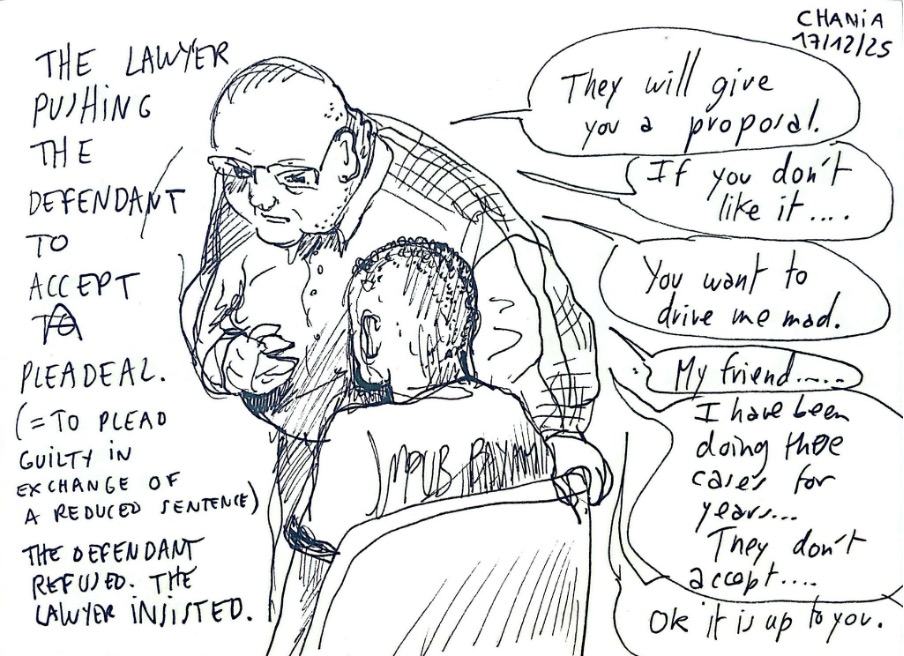 Almost every case in Chania is now settled through a plea deal. Sentences of hundreds of years, of which at least 25 must be served, are often reduced to a uniform 10 years behind bars under the plea deal.